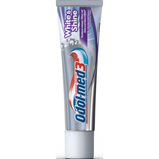 Die klinisch getestete Odol-med3® White&Shine Formel mit Micro Gloss Pearl Technologie (1) reinigt (2) glättet (3) poliert sanft die Zahnoberfläche – für einen klinisch nachgewiesenen Gloss Effekt in 7 Tagen und glänzend glatte, sichtbar weißere Zähne*.
